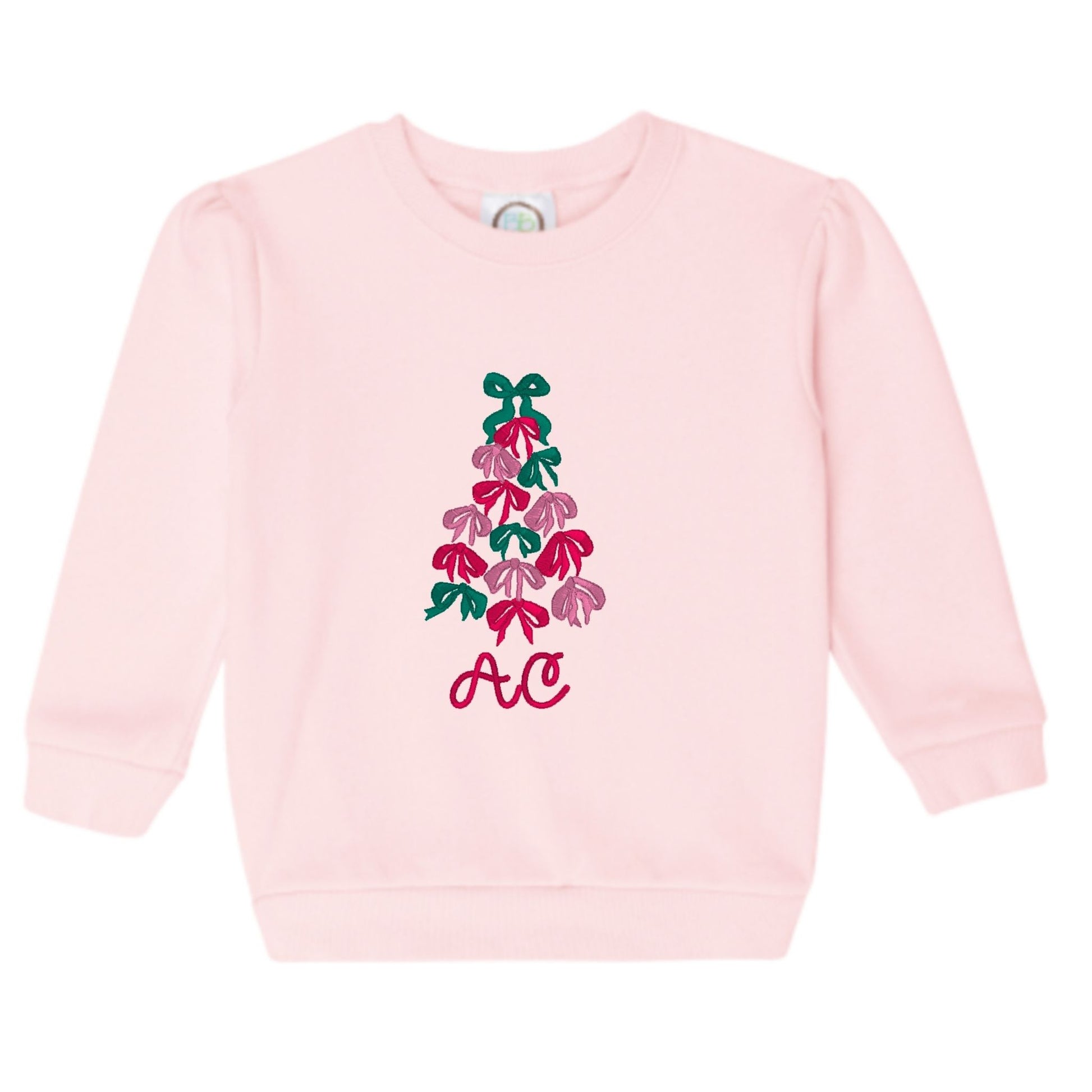 Bow Christmas Tree Puff-Sleeve Sweatshirt