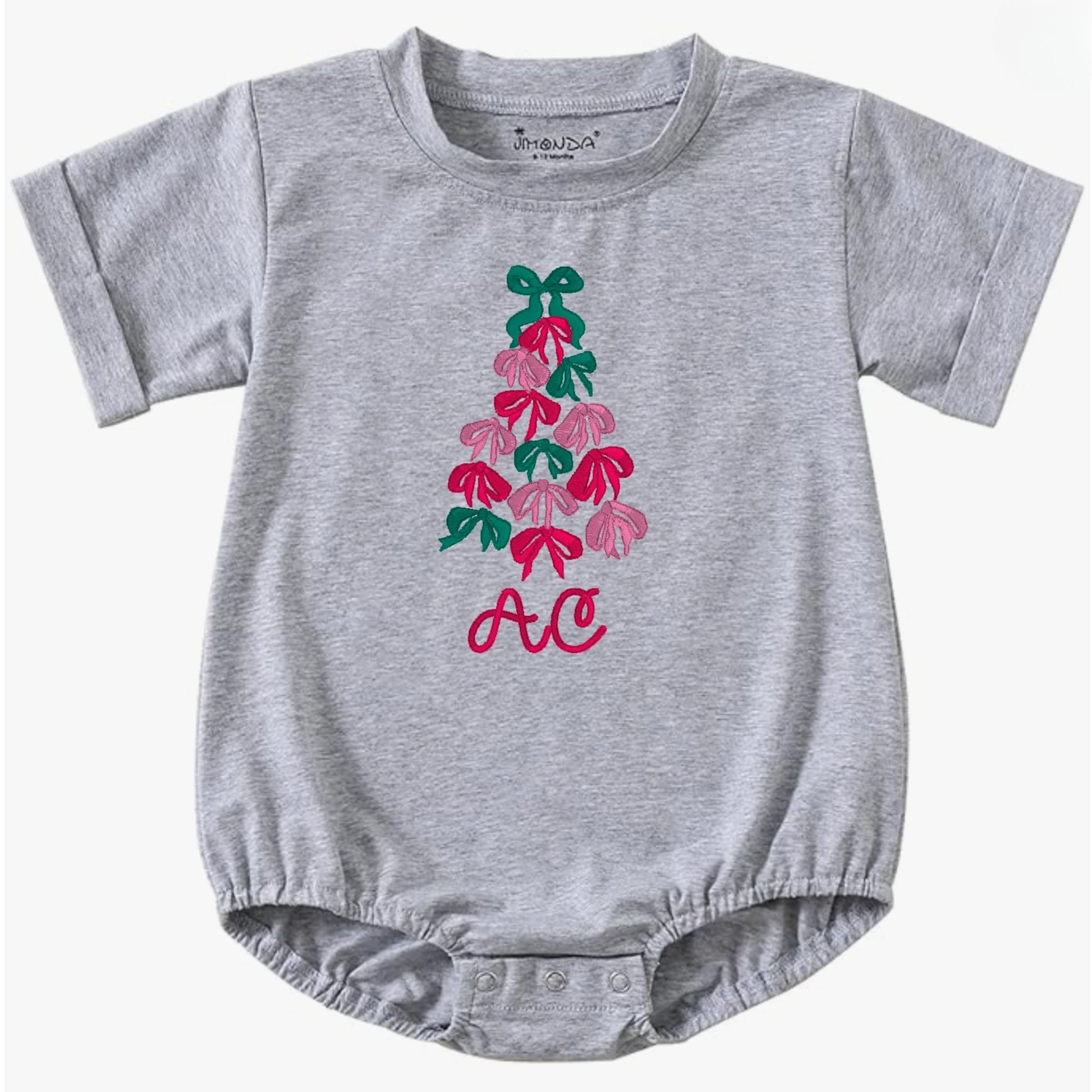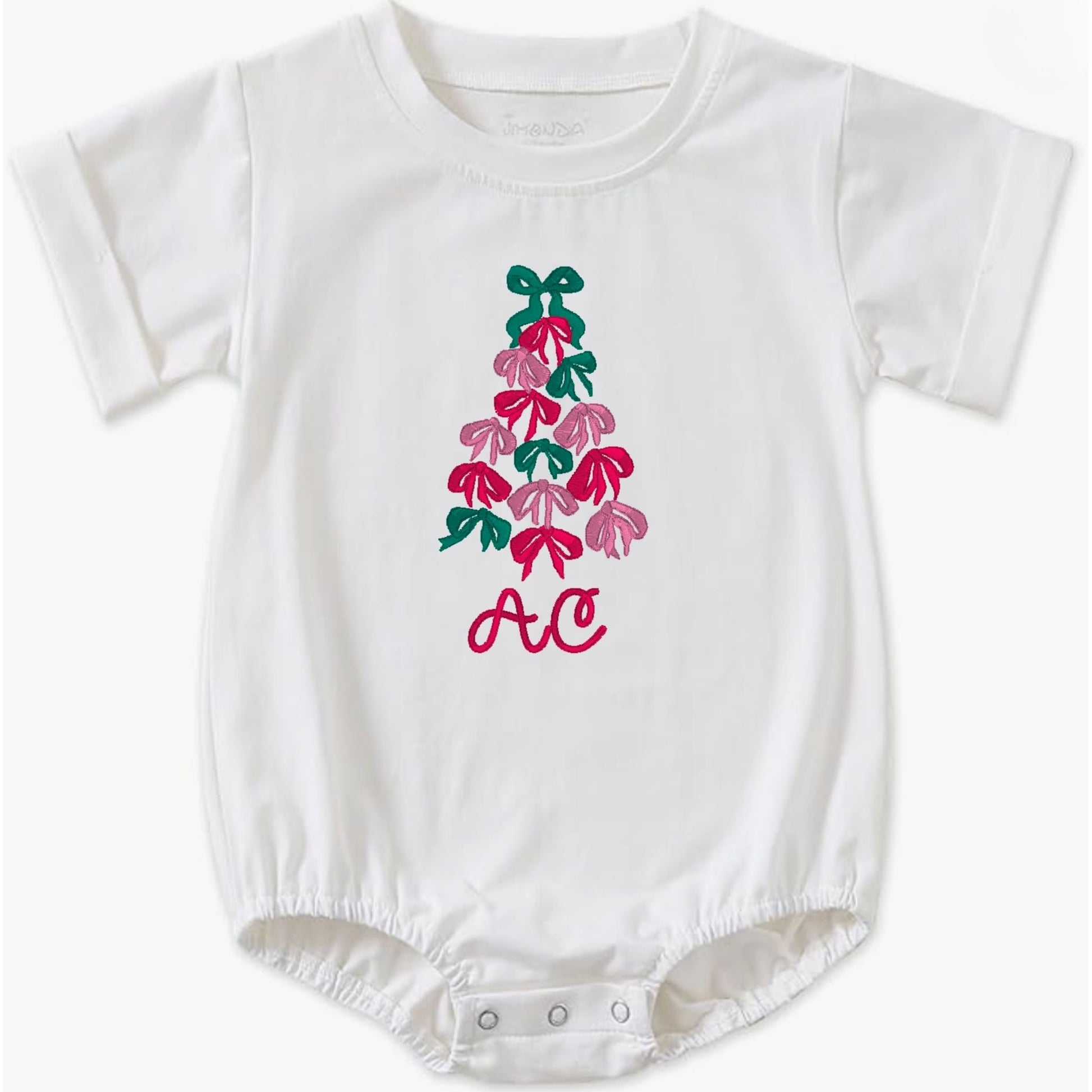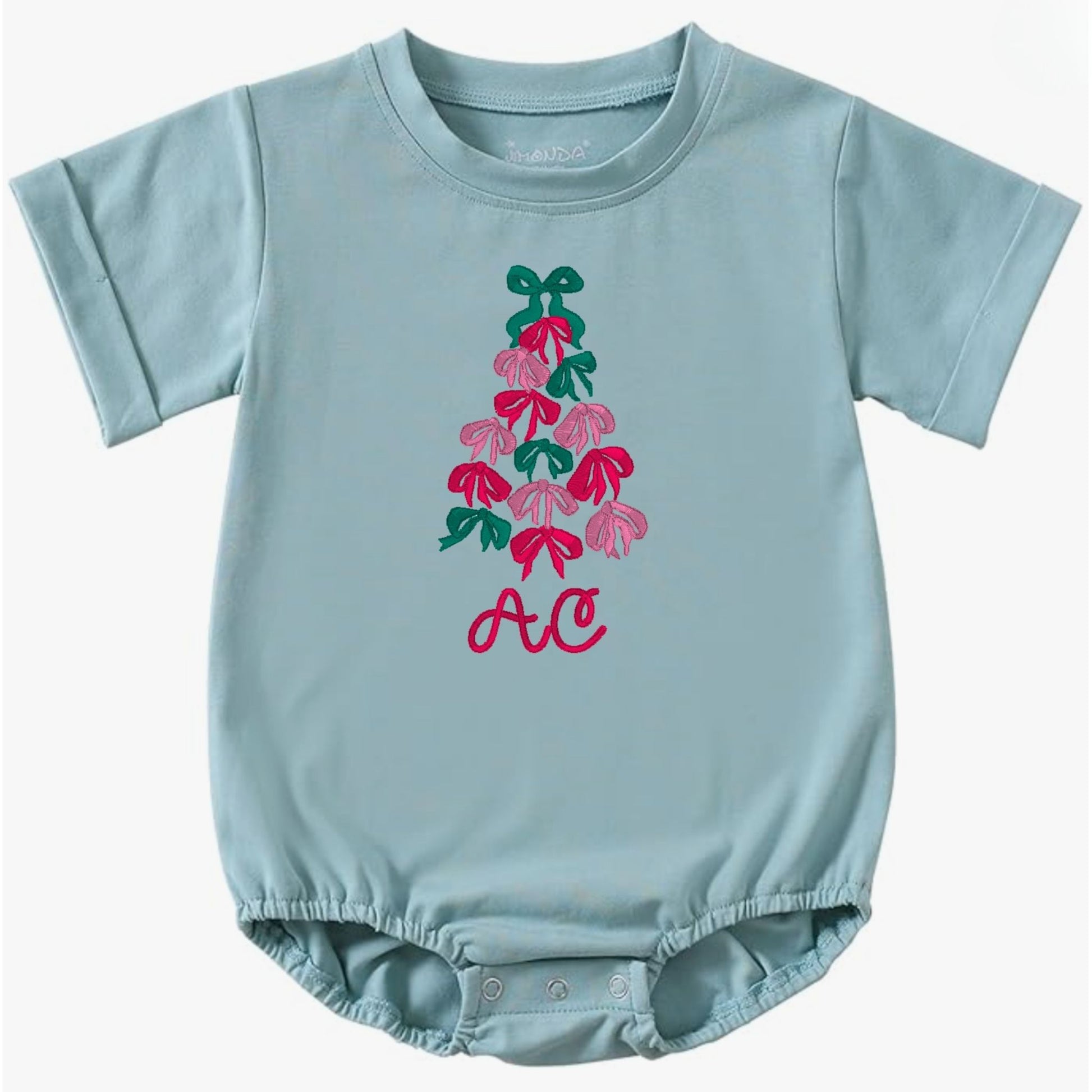 Bow Christmas Tree Short-Sleeve Bubble Romper