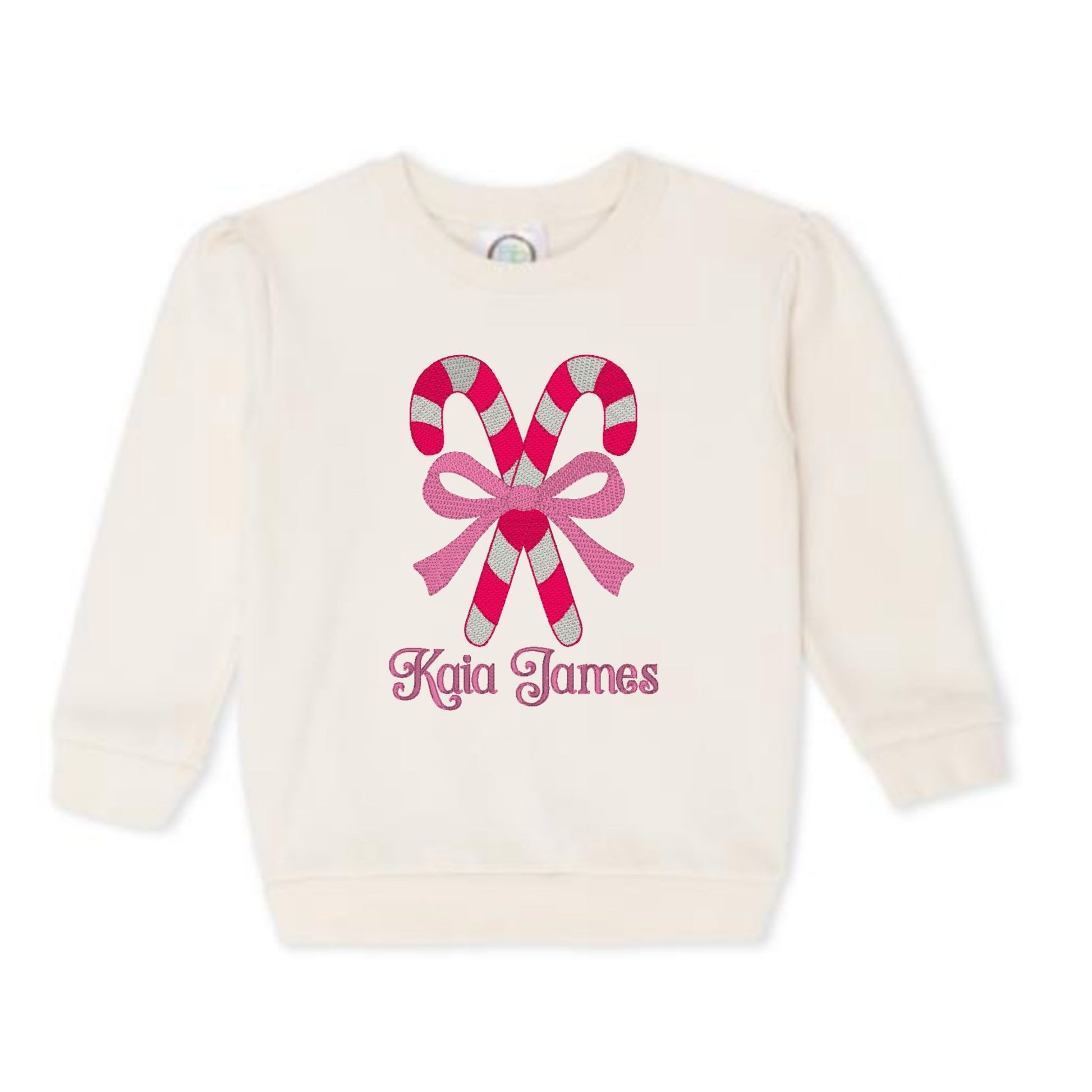 Made from 100% premium cotton, this cozy sweatshirt features darling puff sleeves at the shoulder for an extra-special detail. Each piece includes a classic Christmas embroidery design and can be personalized with your child’s name in your choice of font and thread color—making it a cherished keepsake for seasons to come.