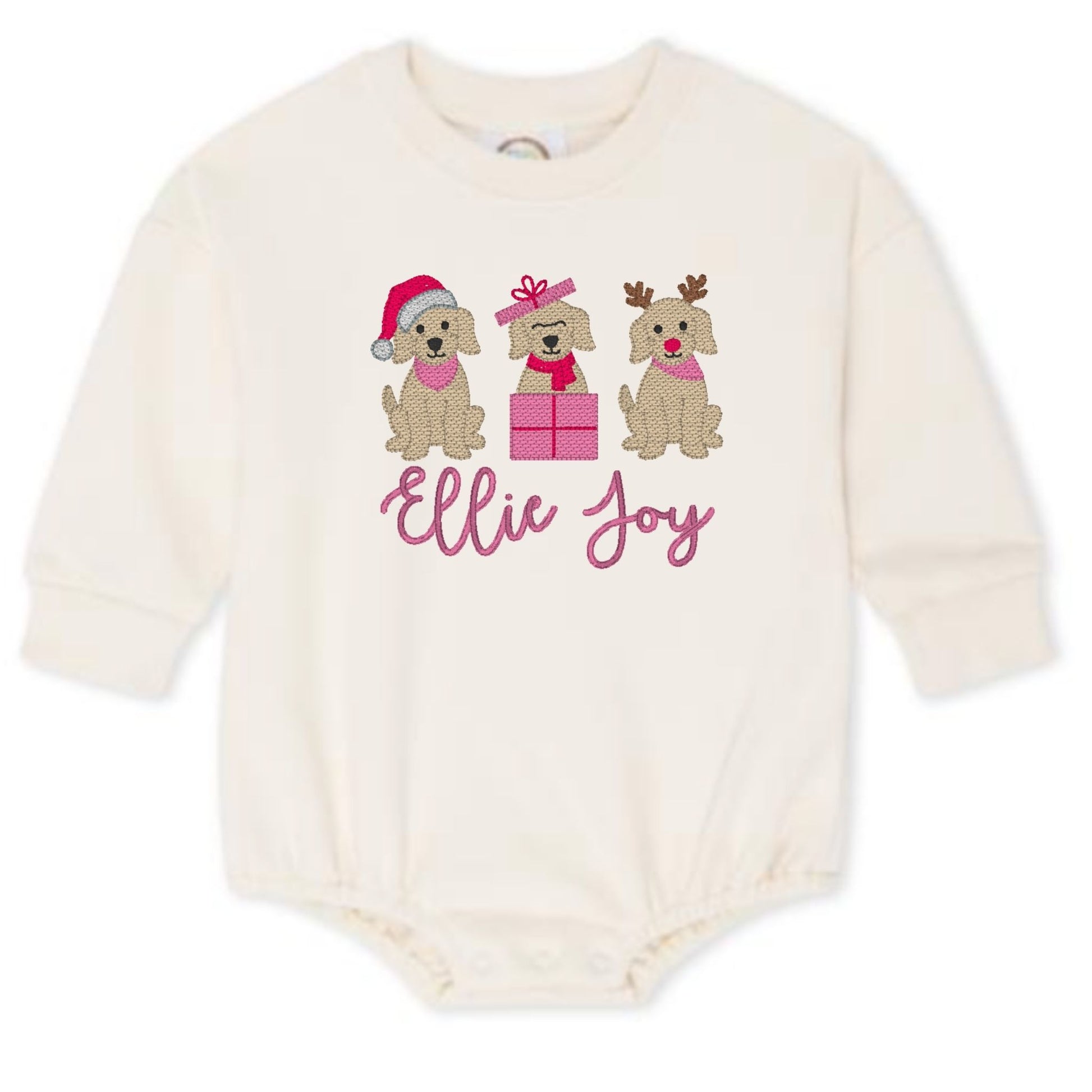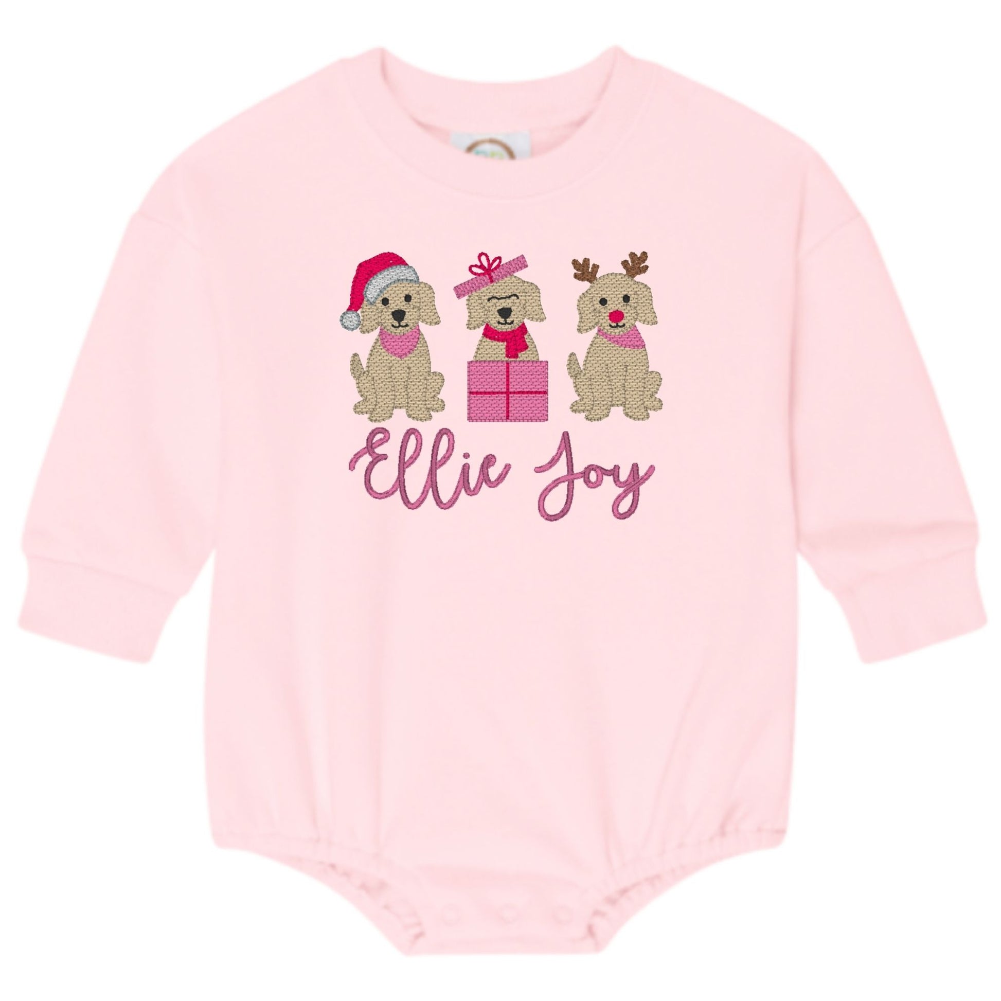 Christmas Puppy Trio Sweatshirt Bubble Romper - Pink