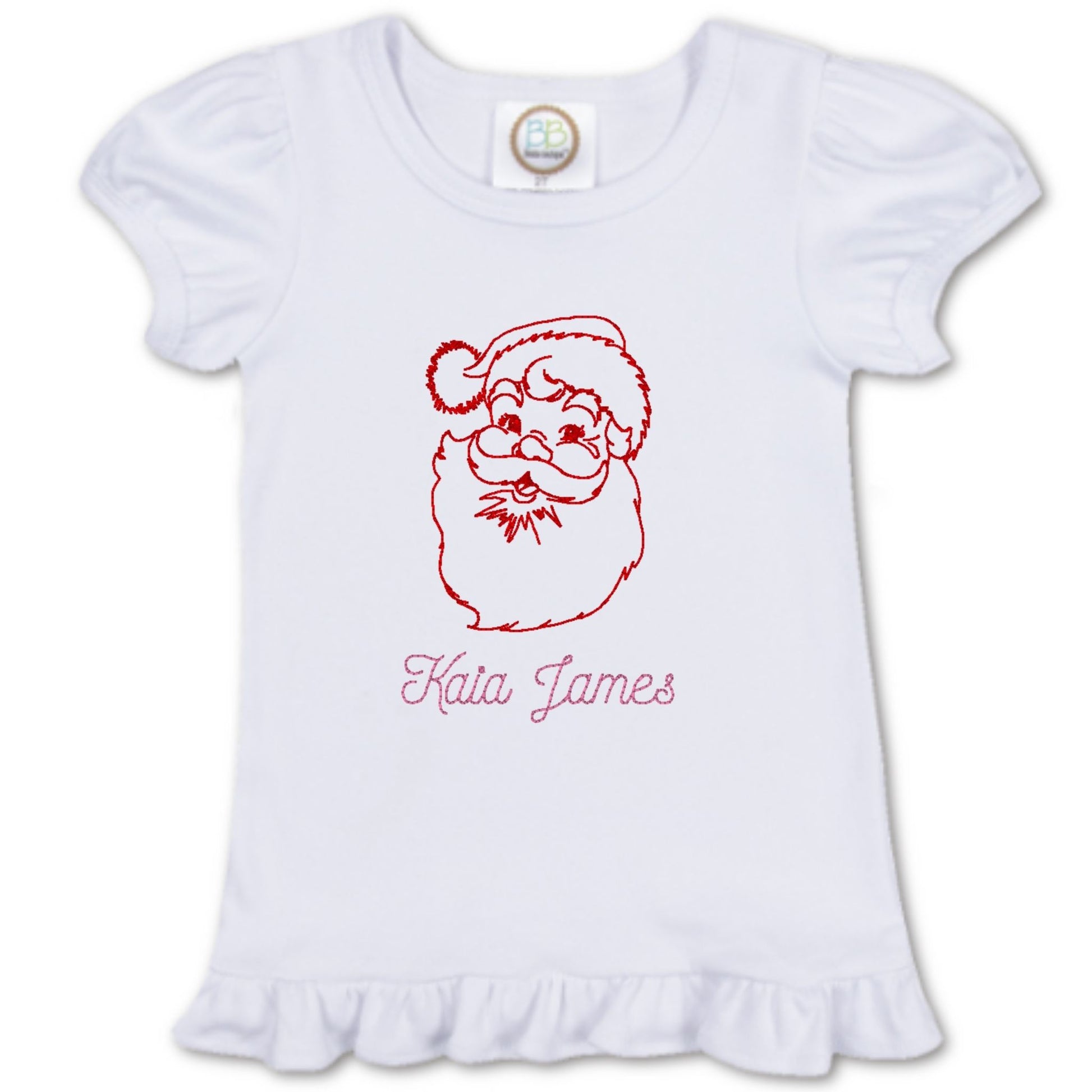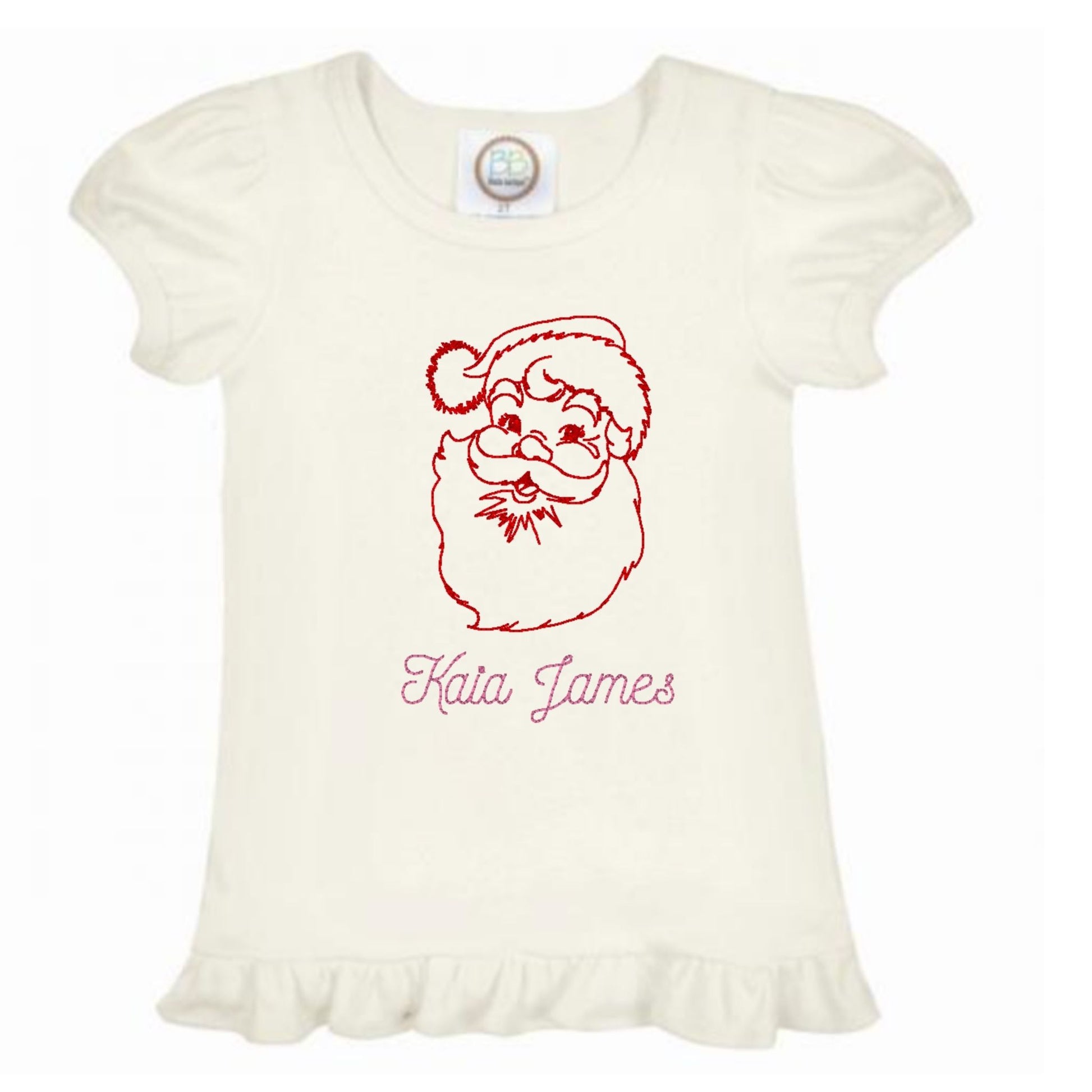 Made from soft, breathable cotton, this sweet tee features ruffled sleeves and a classic Christmas embroidery design. Add a personal touch by customizing your child’s name with your choice of font and thread color—perfect for holiday outings, family photos, and gifting.