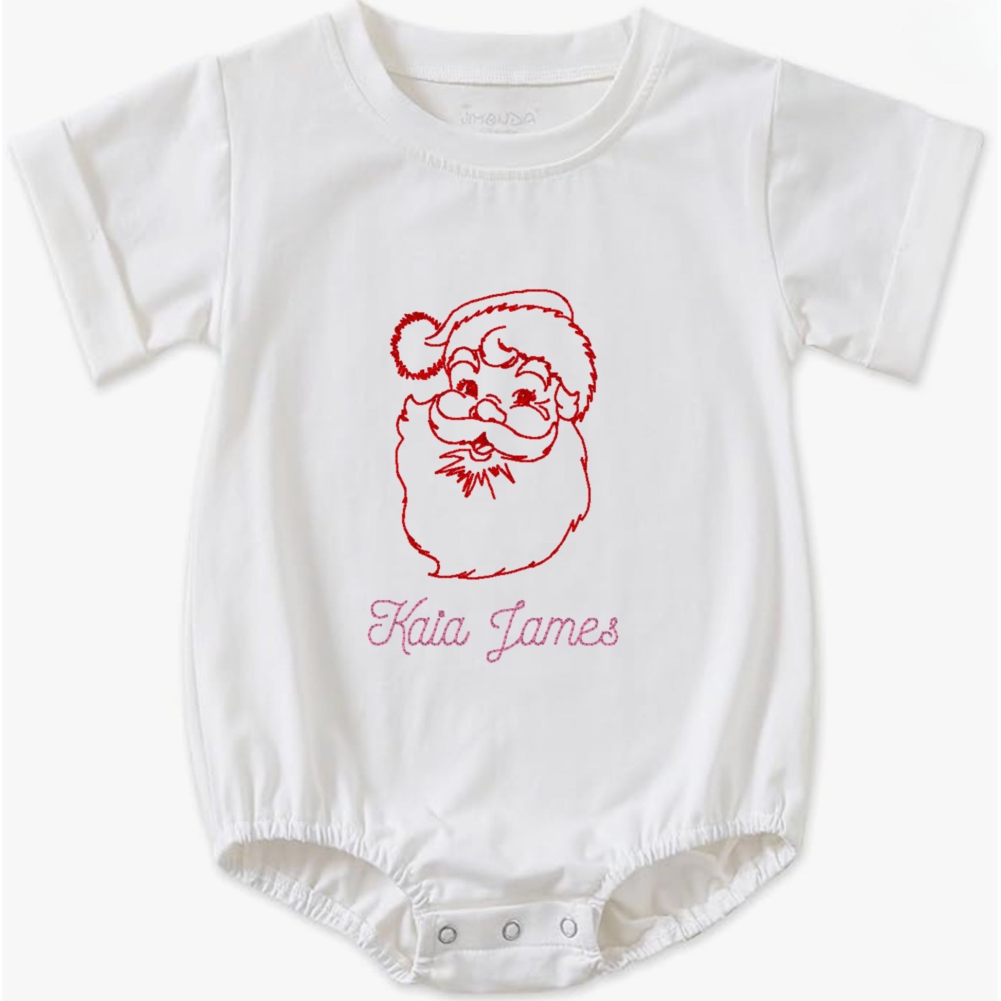 Made from a soft and stretchy cotton blend, this festive bubble is designed for all-day comfort and classic holiday charm. Each piece features a Christmas embroidery design and can be personalized with your child’s name in your choice of font and thread color—creating a keepsake you’ll treasure for years to come.