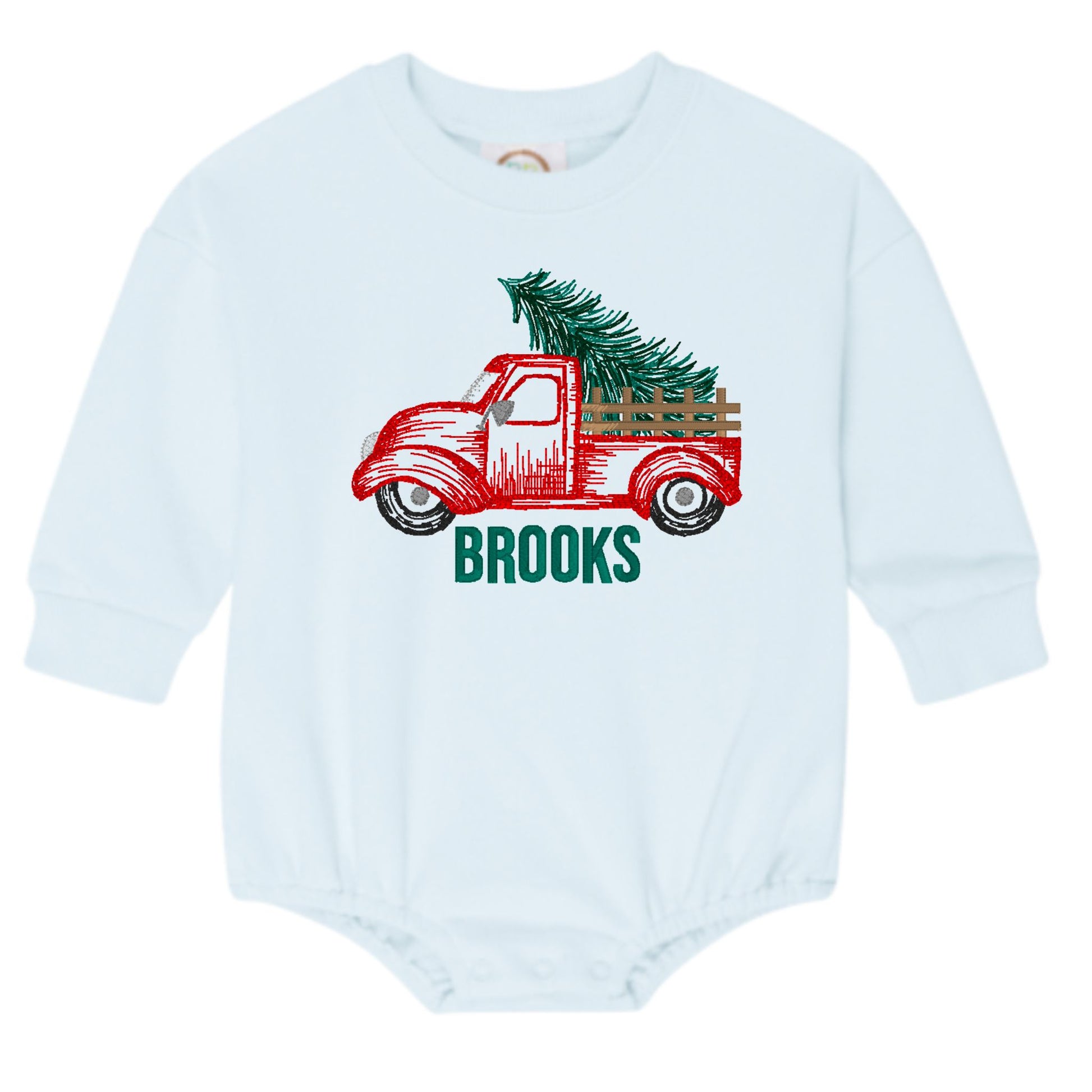Truck with a Tree Christmas Sweatshirt Bubble Romper